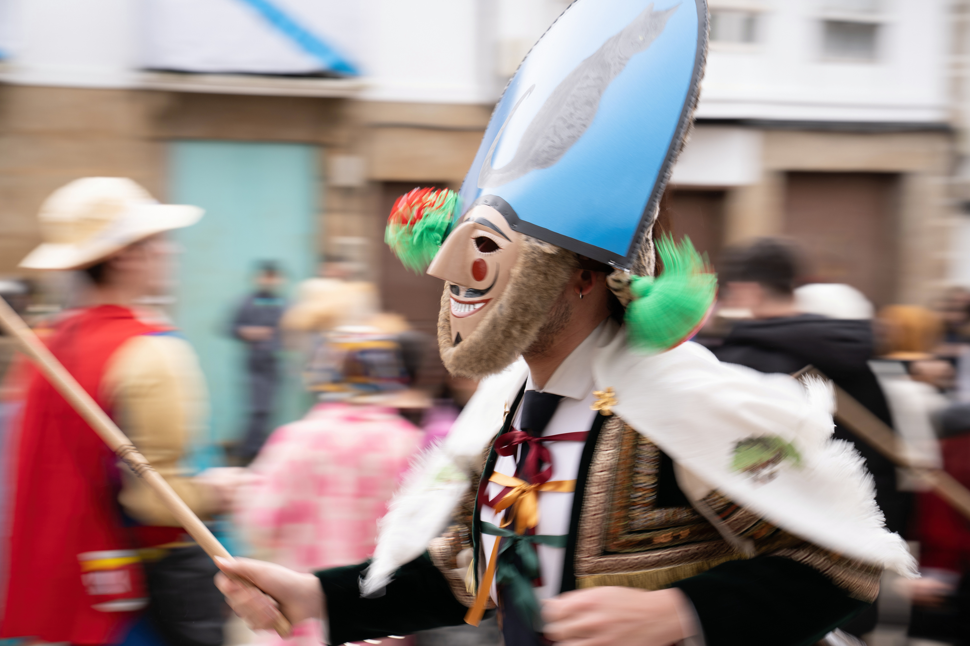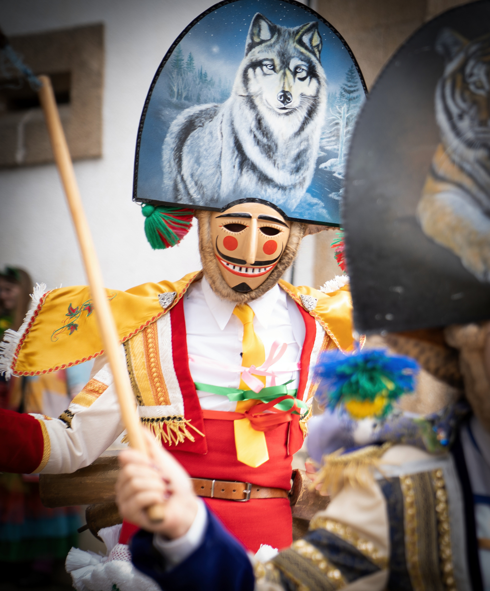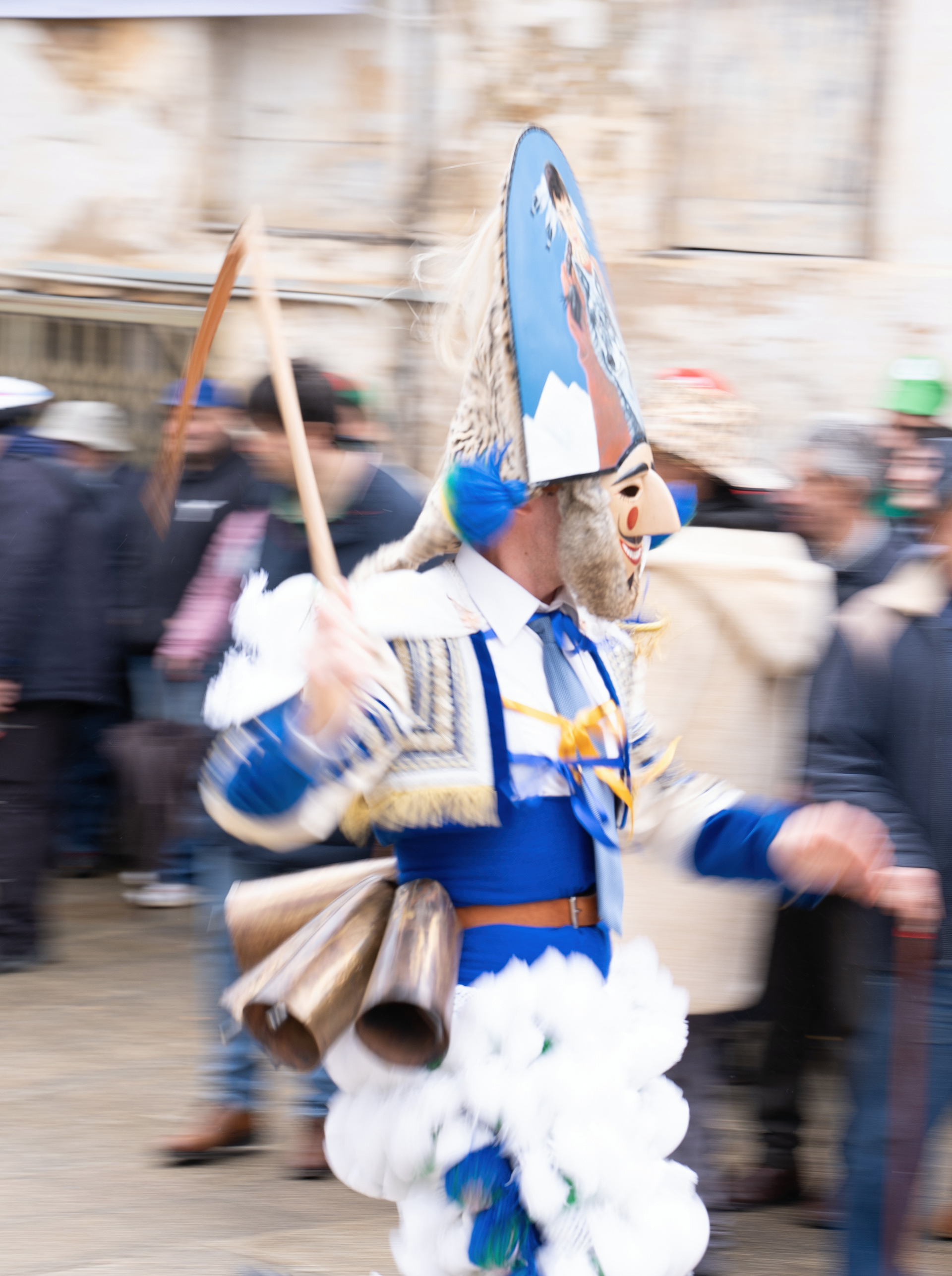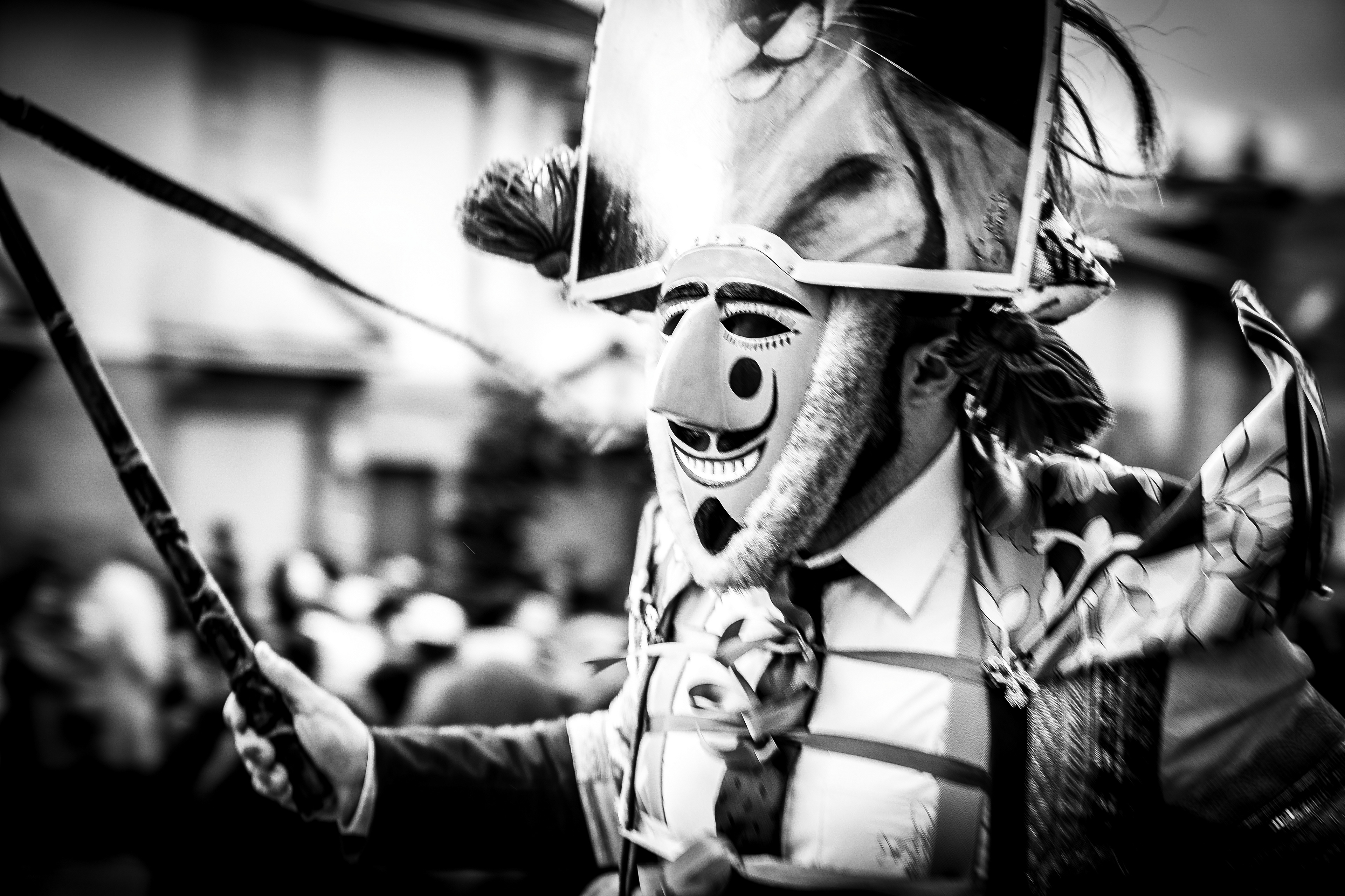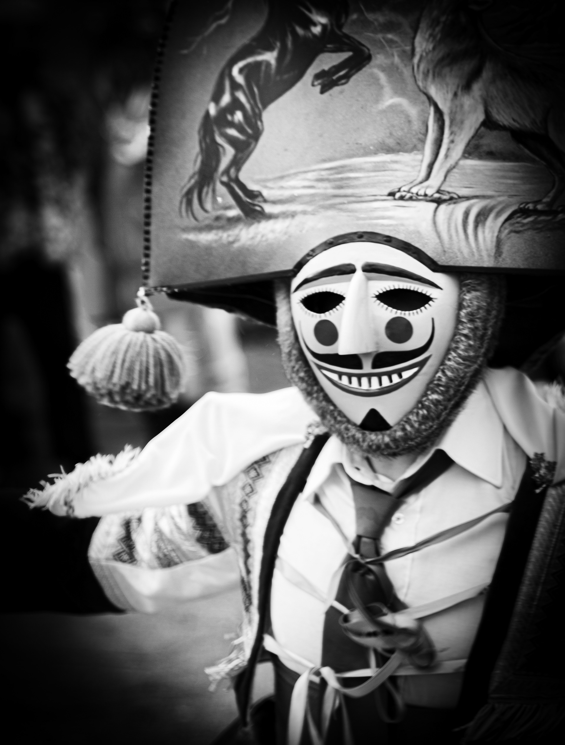 Los Felos de Maceda Aunque a menudo se confunden con los Peliqueiros de Laza o los Cigarróns de Verín, los Felos de Maceda tienen una identidad propia y un carácter distintivo: La Vestimenta: Lucen una careta de madera tallada con una sonrisa burlona y una mitra de cartón decorada con motivos de la fauna local (habitualmente aves o lobos). Visten camisas blancas, corbata, una chaqueta corta con flecos y medias de lana negra. El Sonido: Lo más característico son las chocas (encerros) colgadas de un cinturón de cuero, que anuncian su llegada con un estruendo rítmico mientras corren o saltan. El Comportamiento: El Felo es una figura de autoridad absoluta. Tiene permiso para asustar, saltar sobre la gente y usar su látigo (zamarra), pero no se le puede tocar. Su origen se asocia a antiguos recaudadores de impuestos o vigilantes, mezclado con ritos de fertilidad. Diferenciación: A diferencia de sus "primos" de otras villas, los Felos suelen recorrer las aldeas de la sierra, manteniendo un espíritu más rural, salvaje y errante.